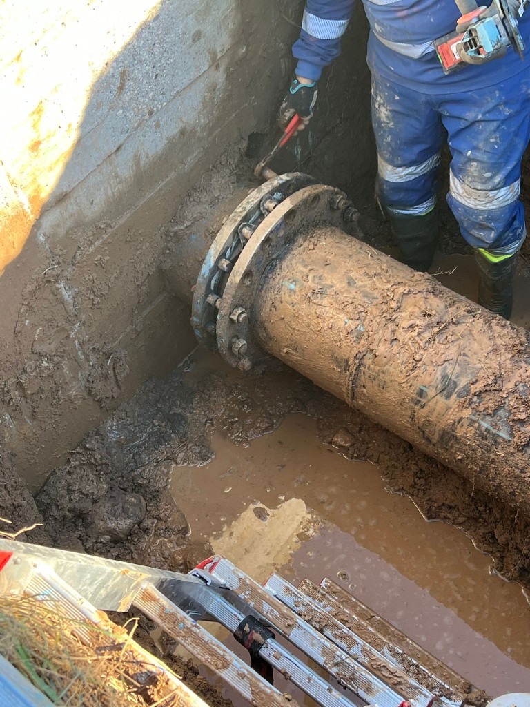 Estevan ha detallado que el problema es que “se ha reventado una junta” a la altura del puente de la Alberta, a unos 3 kilómetros de Alcañiz en dirección a Castelserás, debido a la presión “y ha empezado a salir el agua”. Los técnicos de Aqualia, empresa adjudicataria del suministro desde la ETAP, han actuado desde primera hora de la mañana para reparar la afección. Técnicos de Aquara, empresa que gestiona el suministro de agua de boca municipal a partir del depósito, han participado también en el operativo y se afanan a esta hora por recuperar la normalidad.